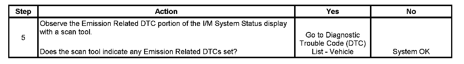 The purpose of this procedure is to satisfy the enable criteria necessary to execute inspection/maintenance (I/M) readiness diagnostics for the evaporative emission (EVAP) system. The procedure may be used to set the EVAP I/M System Status display on the scan tool to YES. The EVAP I/M System Status display indicates whether or not the control module has completed the readiness diagnostics. The readiness diagnostics complete when all DTCs comprising the diagnostics run and pass, or any DTC comprising the diagnostics illuminates the malfunction indicator lamp (MIL). If the diagnostics pass during one drive cycle, 17 hours must elapse, regardless of whether the vehicle is driven or not. Then, the diagnostics will run again during the next drive cycle in which the conditions for running are met. Once the diagnostics have passed during the third drive cycle, the EVAP I/M System Status display will be updated to YES. A failed or aborted diagnostic will require the vehicle to cool down in order to meet the enable criteria for another drive cycle. Therefore, performing a visual inspection prior to running the EVAP test may prevent having to repeat the drive cycle.