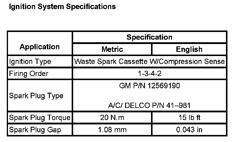 Ignition System Specifications: