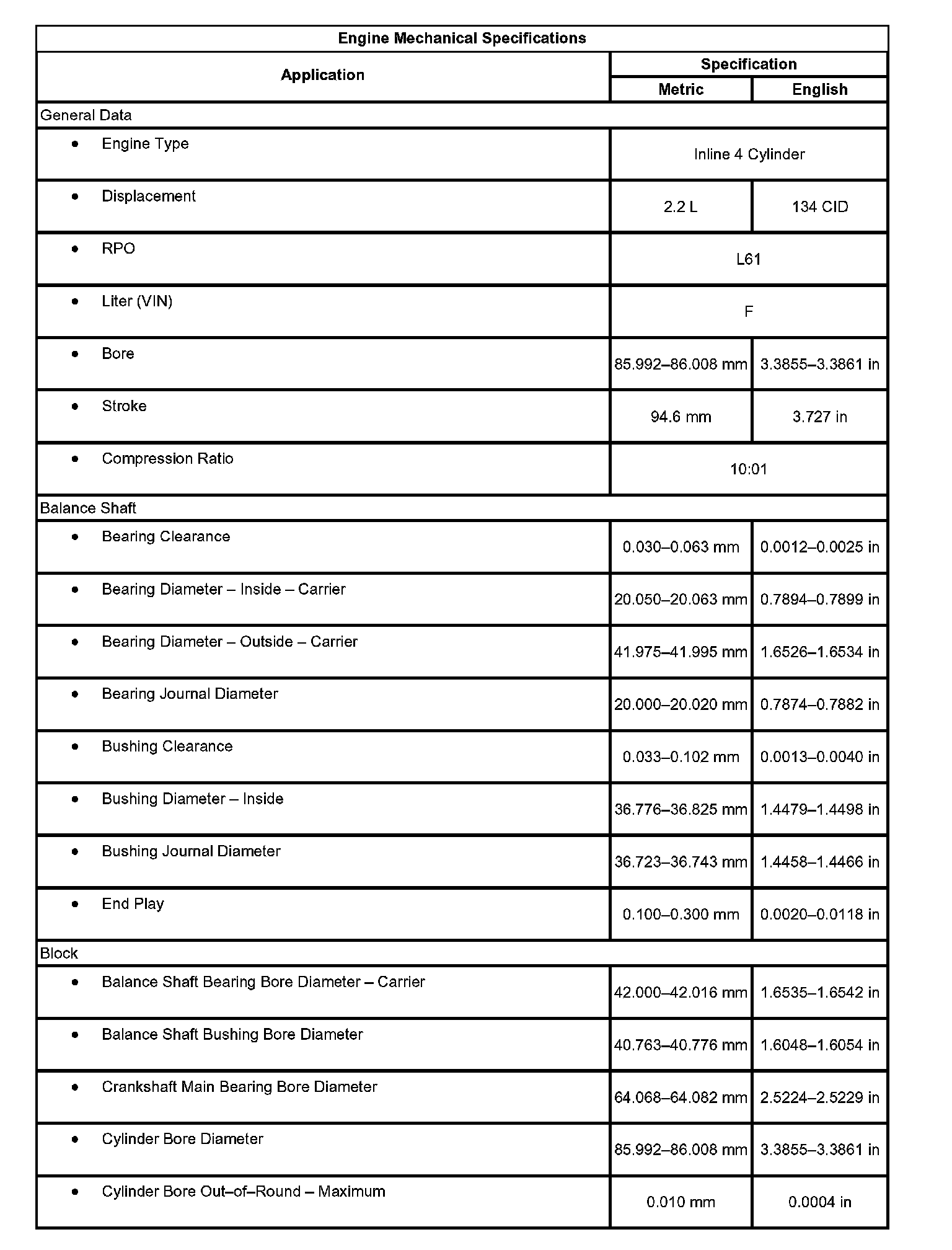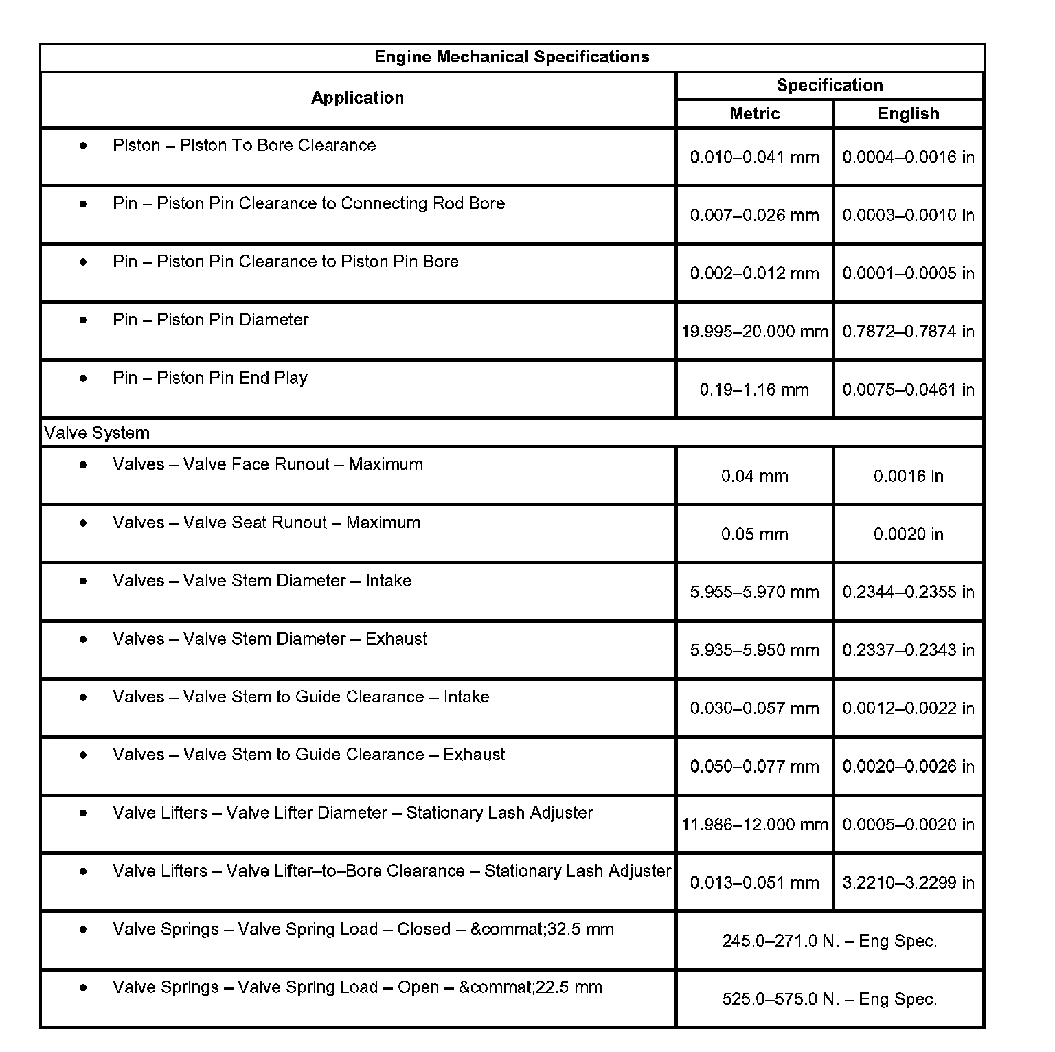 Engine Mechanical Specifications:
