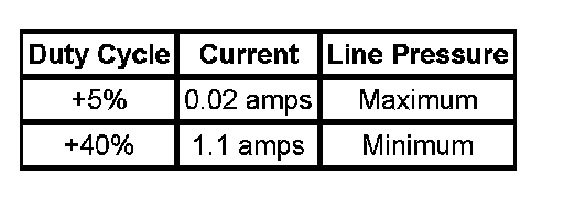 When vehicle operating conditions are appropriate to apply the TCC, the PCM immediately increases the duty cycle to approximately 42 percent. The PCM then ramps the duty cycle up to approximately 90 percent to achieve full TCC apply pressure. The rate at which the PCM increases the duty cycle controls the TCC apply. Similarly, the PCM also ramps down the TCC solenoid duty cycle to control the TCC release.