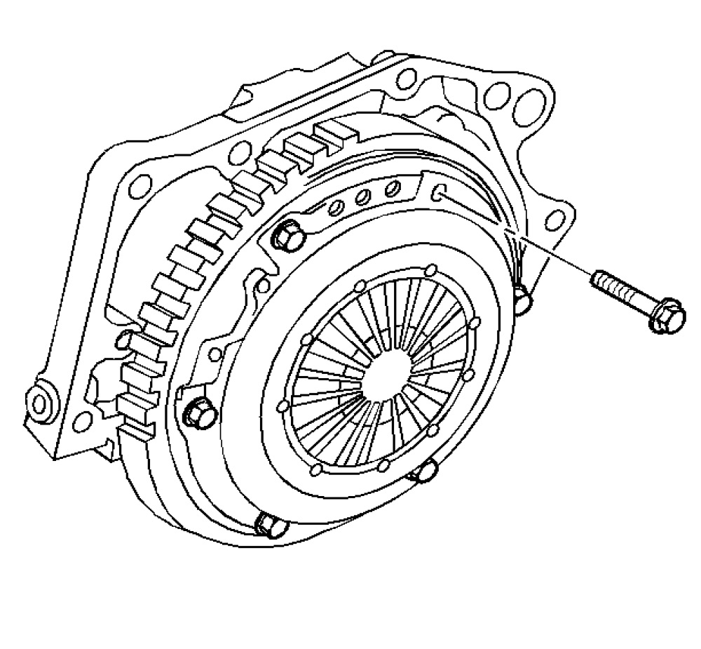 2. Remove the clutch cover bolts one turn at a time, until spring pressure is relieved.