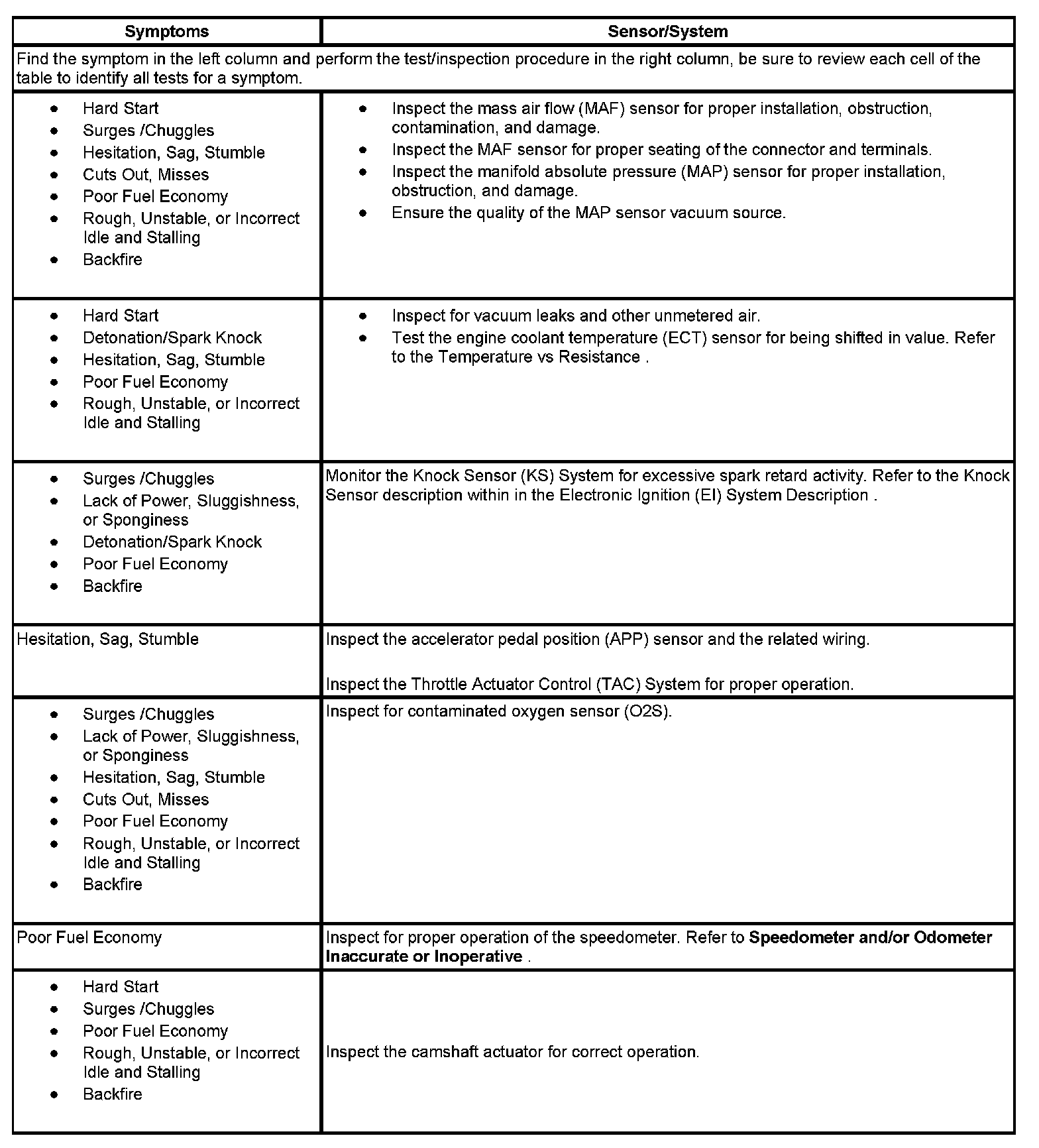 - Symptoms - Sensors/Systems