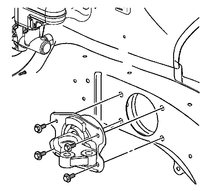 The transmission mount to transmission bolts must be hand started. Do not pry the transmission or mount to align the holes.