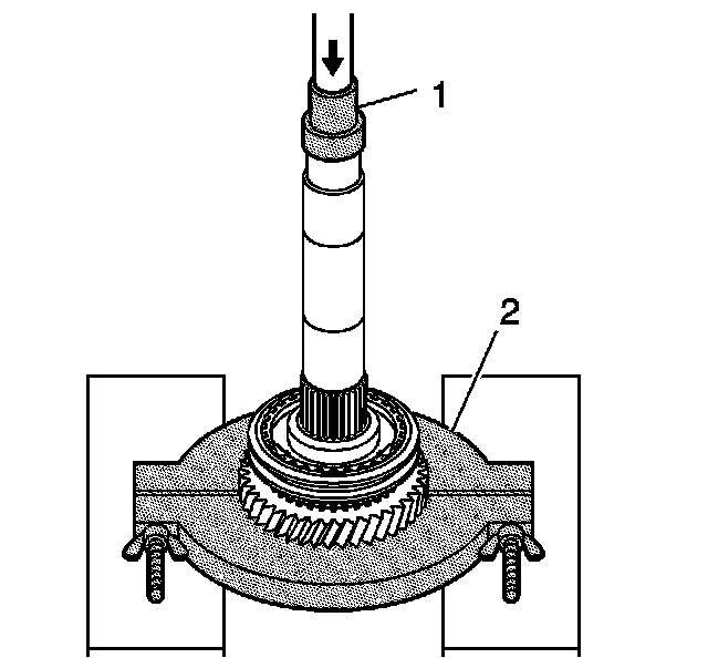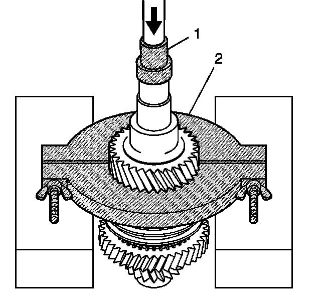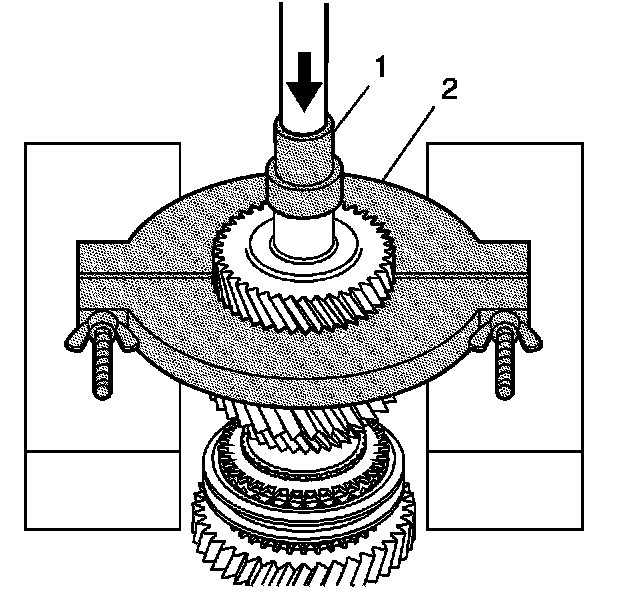 Press off the 4th driven gear using the J 36513 (2) and the J 44378 (1).