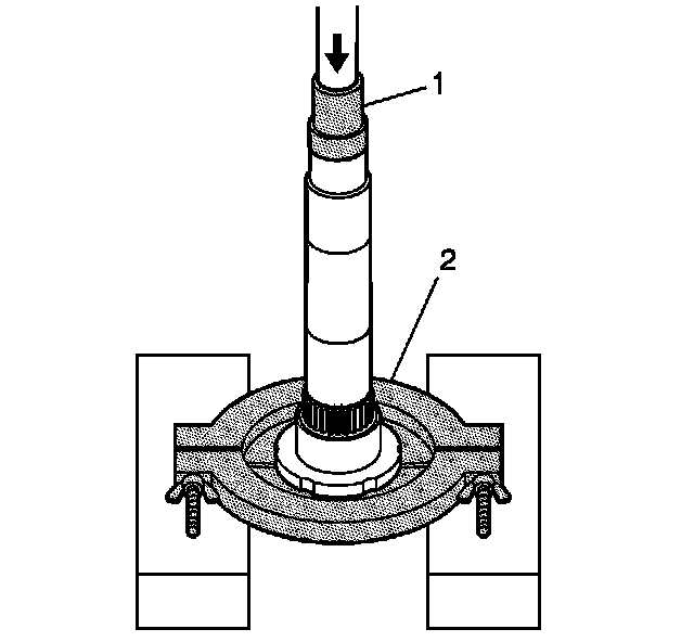 Remove the collar and the thrust washer using the J 44378 (1), the J 36513 (2), and a hydraulic press.