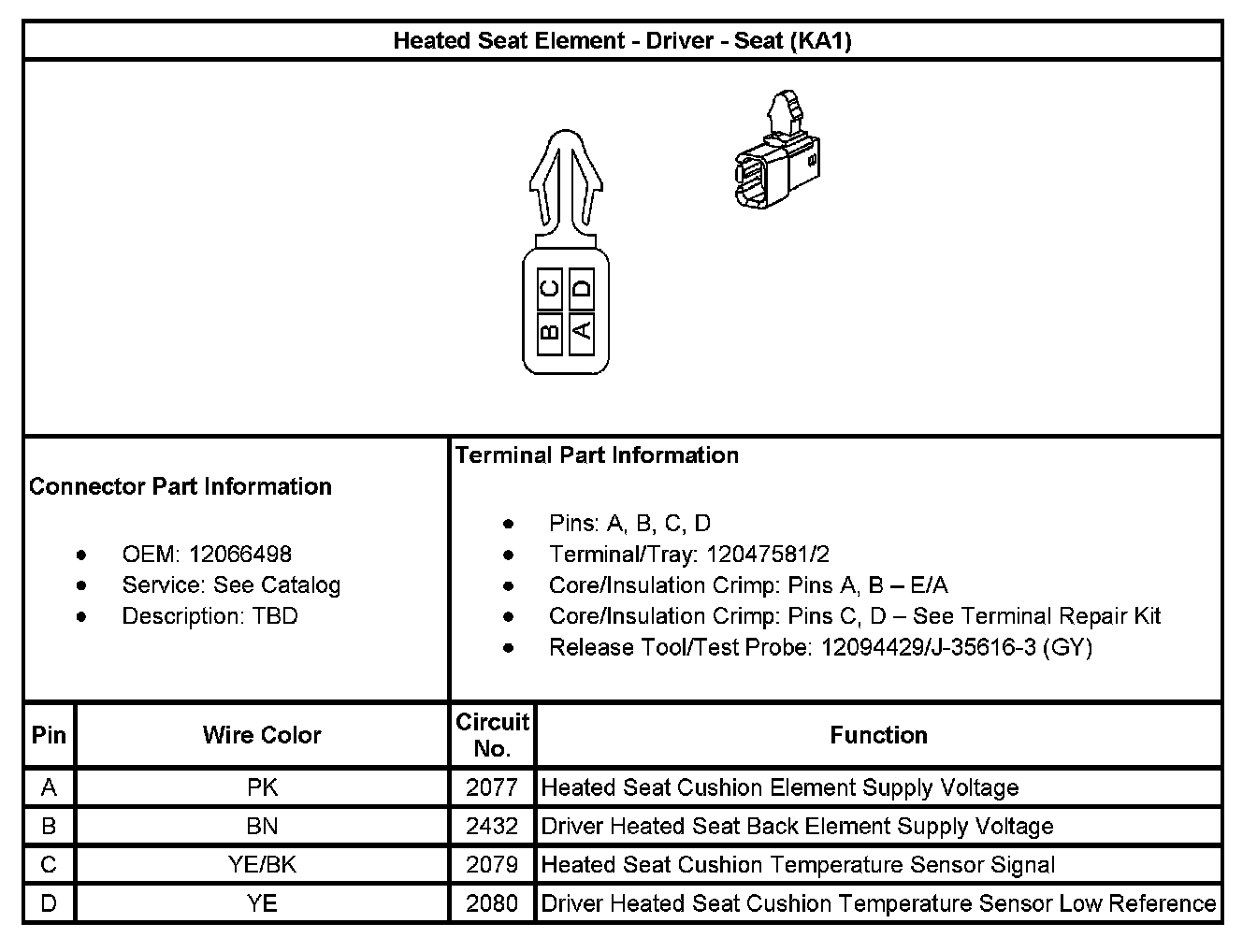 Heated Seat Element - Driver - Seat (With RPO Code KA1):