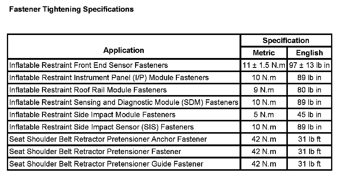 Fastener Tightening Specifications: