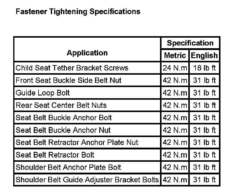 Fastener Tightening Specifications: