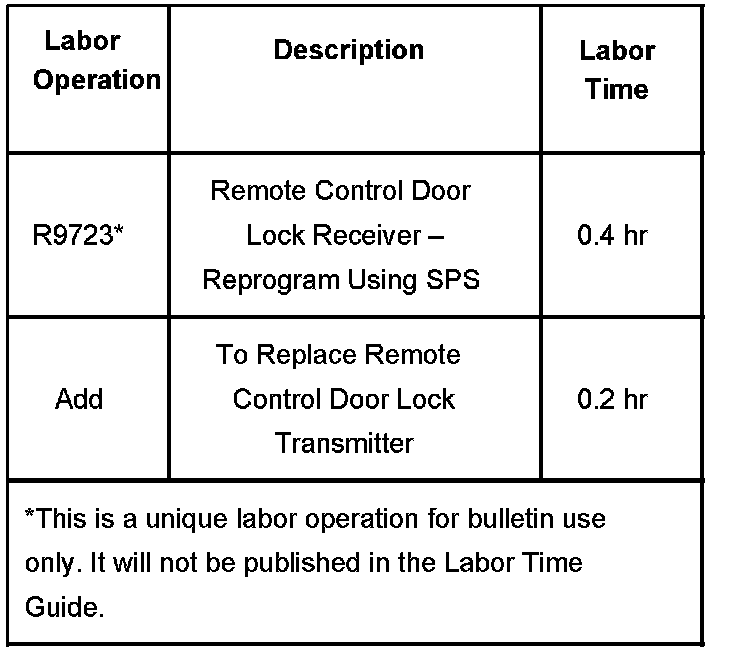 If the vehicle was built prior to June 1, 2006, replace the remote control door lock transmitter and reprogram the remote control door lock receiver with the latest software using SPS.