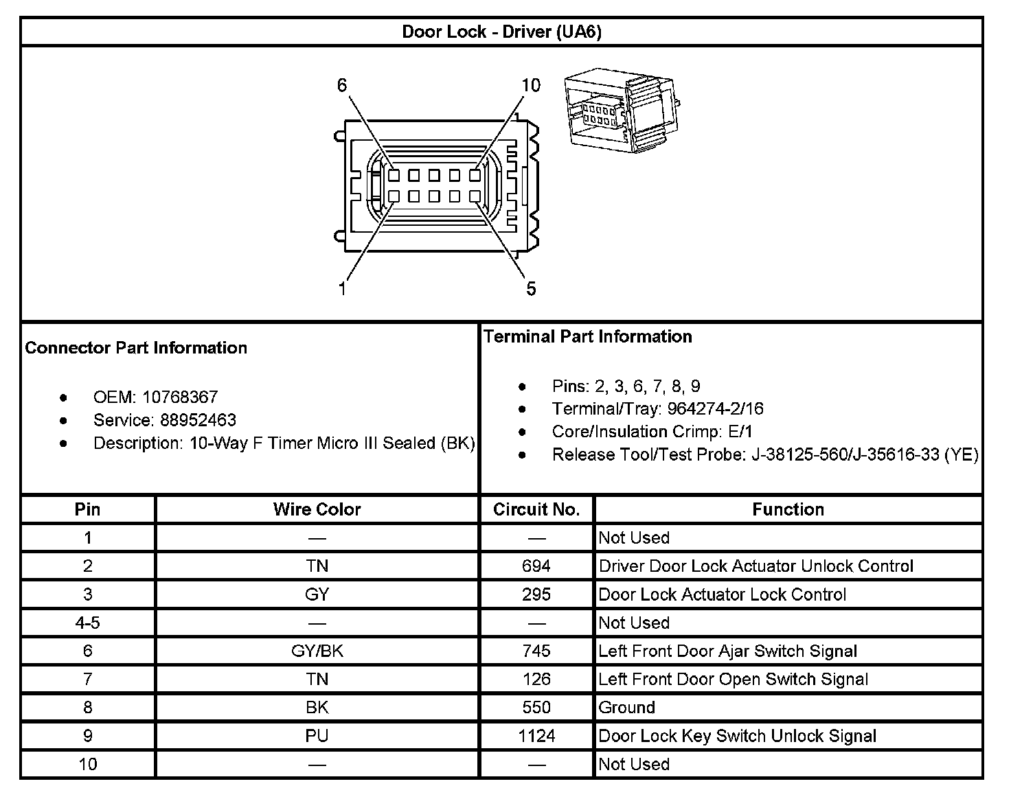 Door Lock - Driver (With RPO Code UA6):