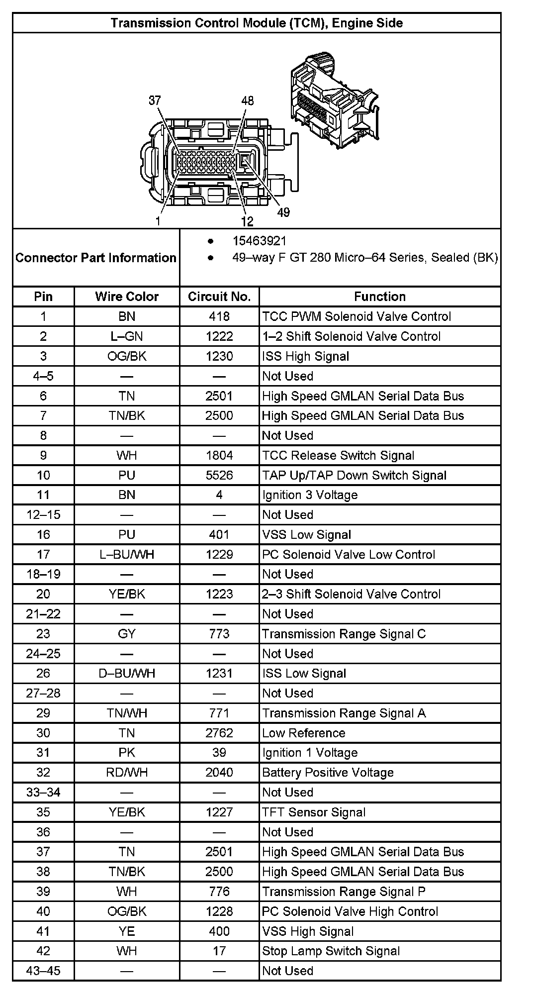 Transmission Control Module (TCM), Engine Side: