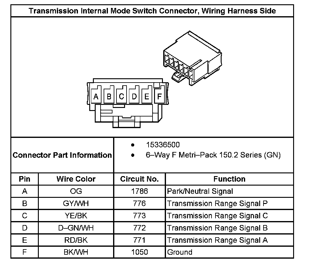Transmission Internal Mode Switch Connector, Wiring Harness Side: