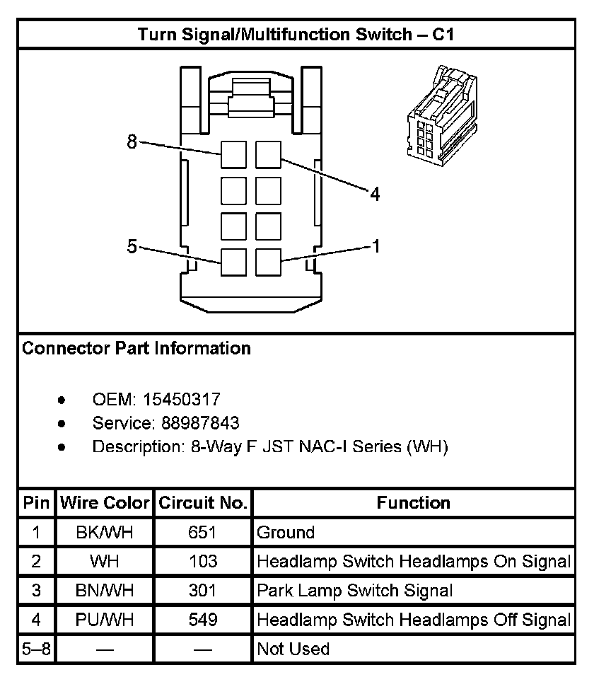 Turn Signal/Multifunction Switch - C1: