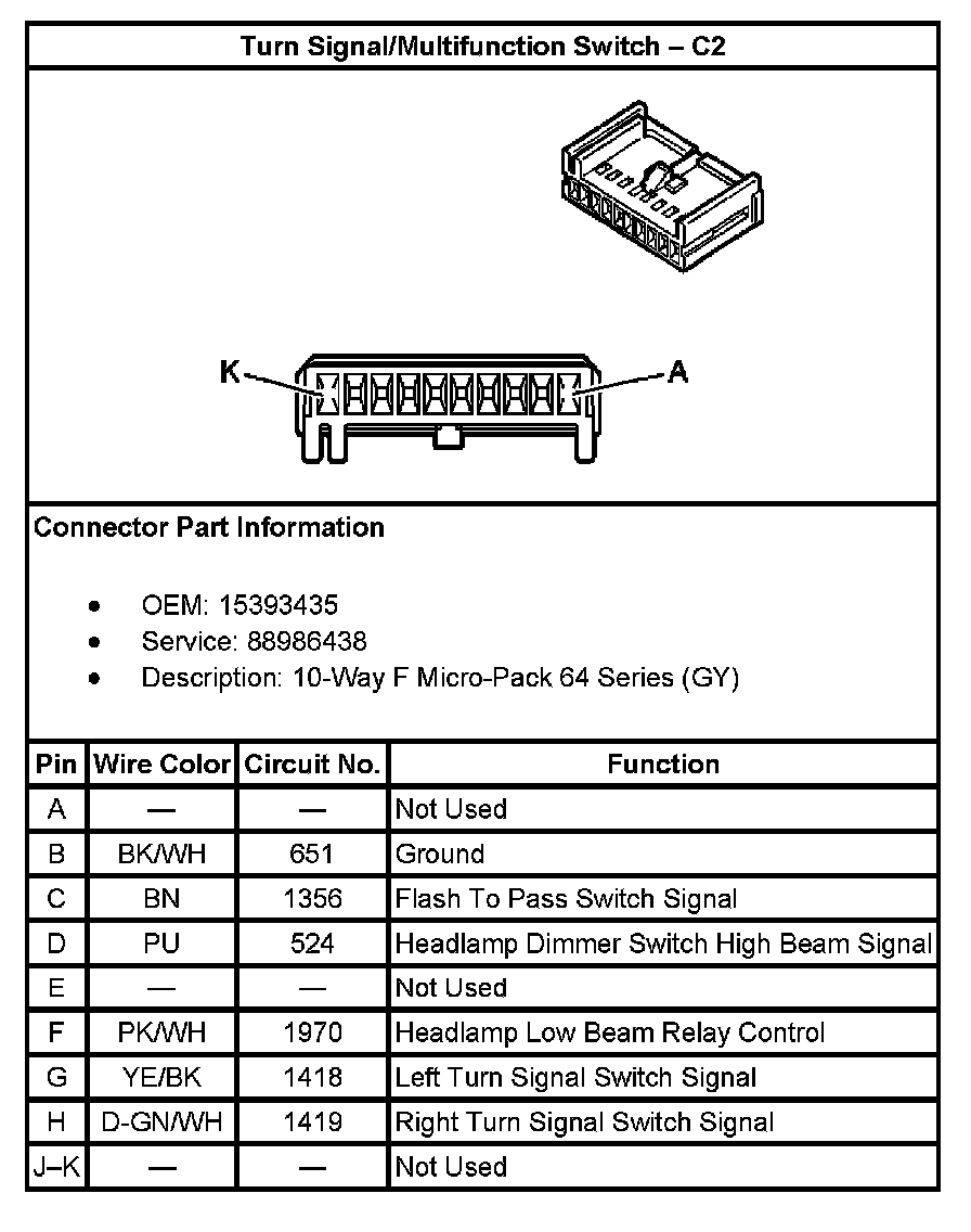 Turn Signal/Multifunction Switch - C2: