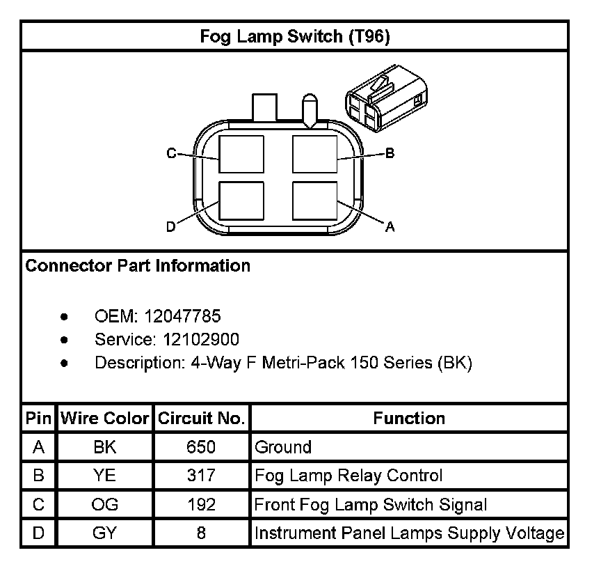 Fog Lamp Switch (With RPO Code T96):