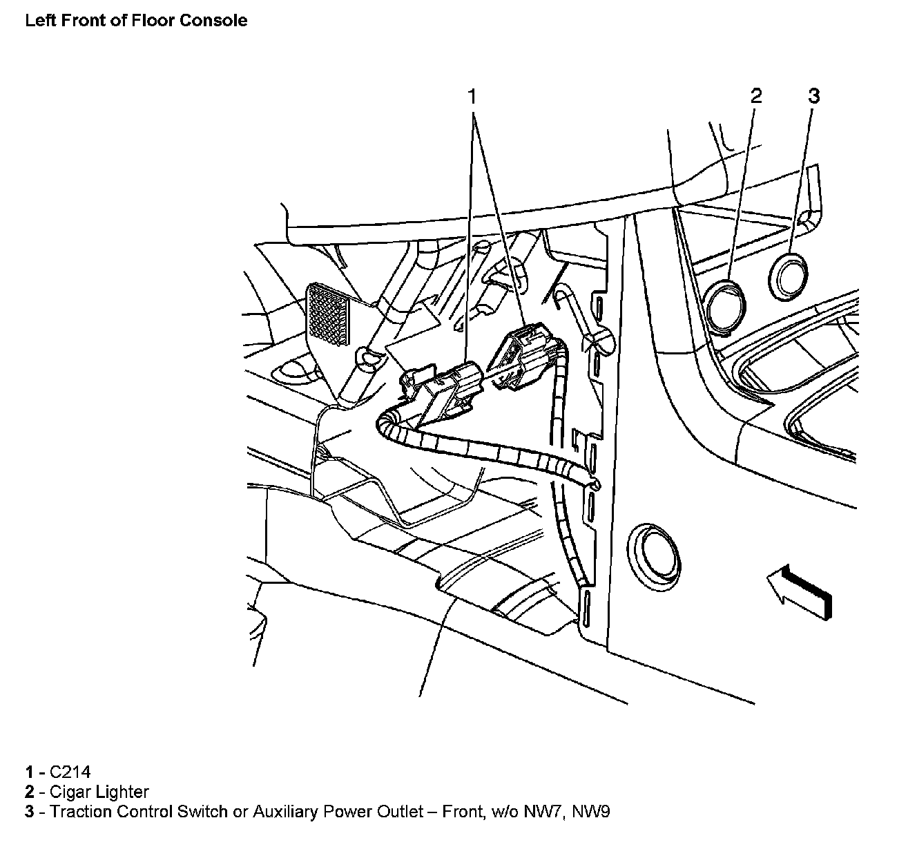 Left Front Of Floor Console: