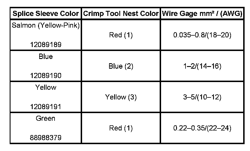 4. Select the proper DuraSeal splice sleeve according to the wire size. Refer to the above table at the beginning of the repair procedure for the color coding of the DuraSeal splice sleeves and the crimp tool nests.