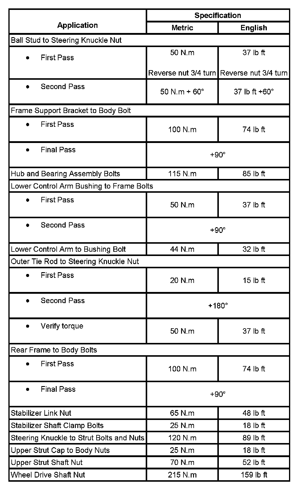 Fastener Tightening Specifications: