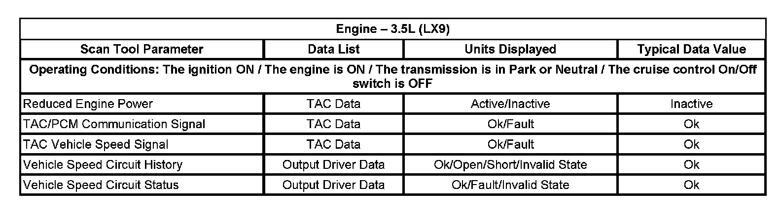 The scan tool data lists contain all of the cruise control related parameters that are available on the scan tool. The parameters in the list are arranged in alphabetical order. The data list column indicates the location of the parameter within the scan tool menu selections.