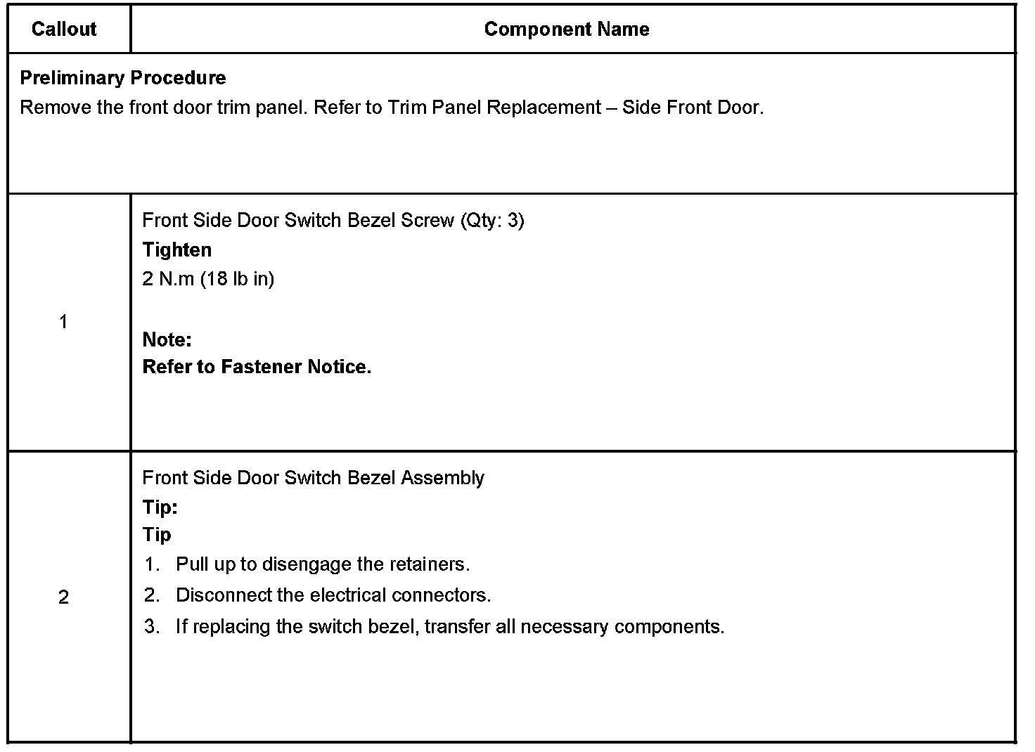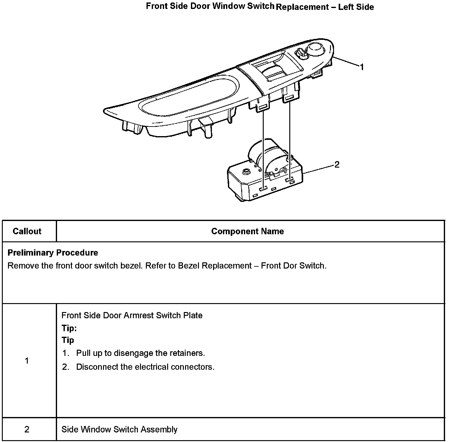 Revised Front Door Switch Bezel Replacement and Front Side Door Window Switch Replacement - Left Side
