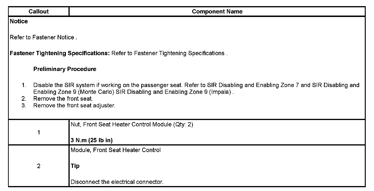 HEATED SEAT CONTROL MODULE REPLACEMENT - FRONT