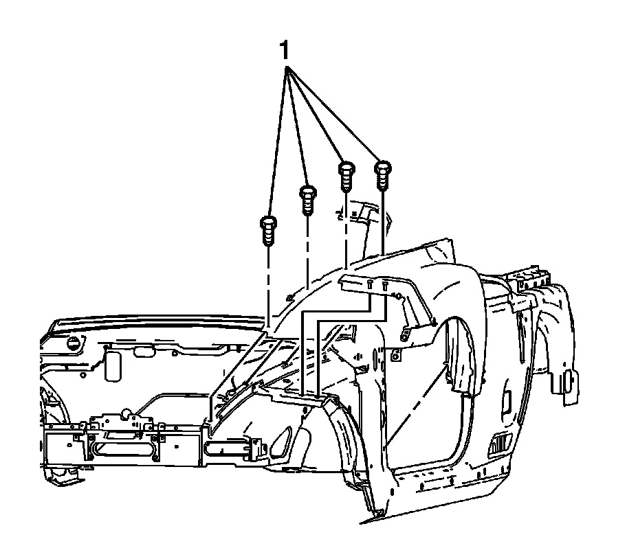 4. Remove the lower fender reinforcement fasteners. Refer to Fender Reinforcement Replacement - Lower (Service and Repair) .