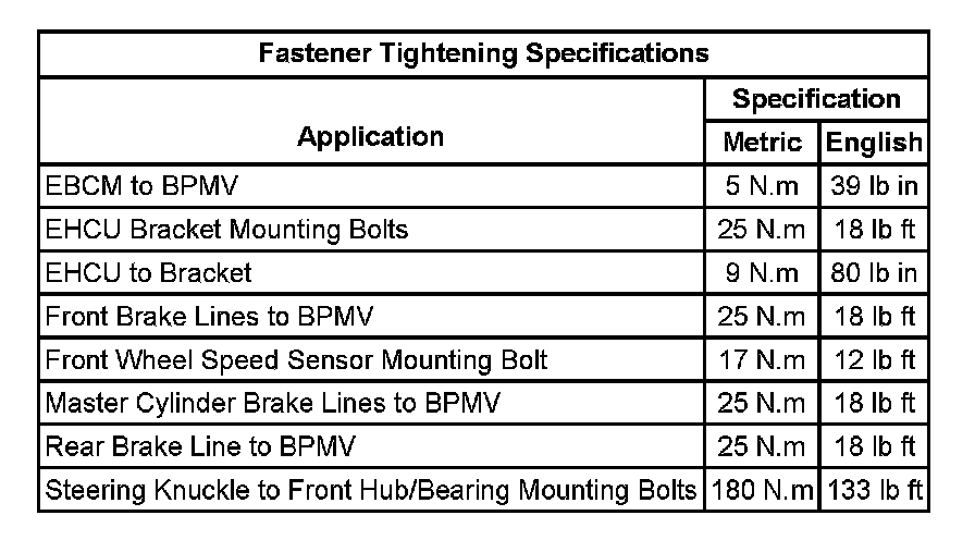 Fastener Tightening Specifications: