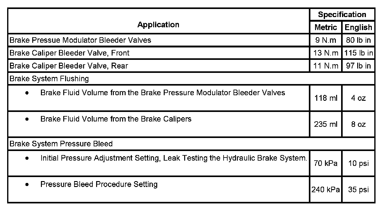 Brake Component Specifications:
