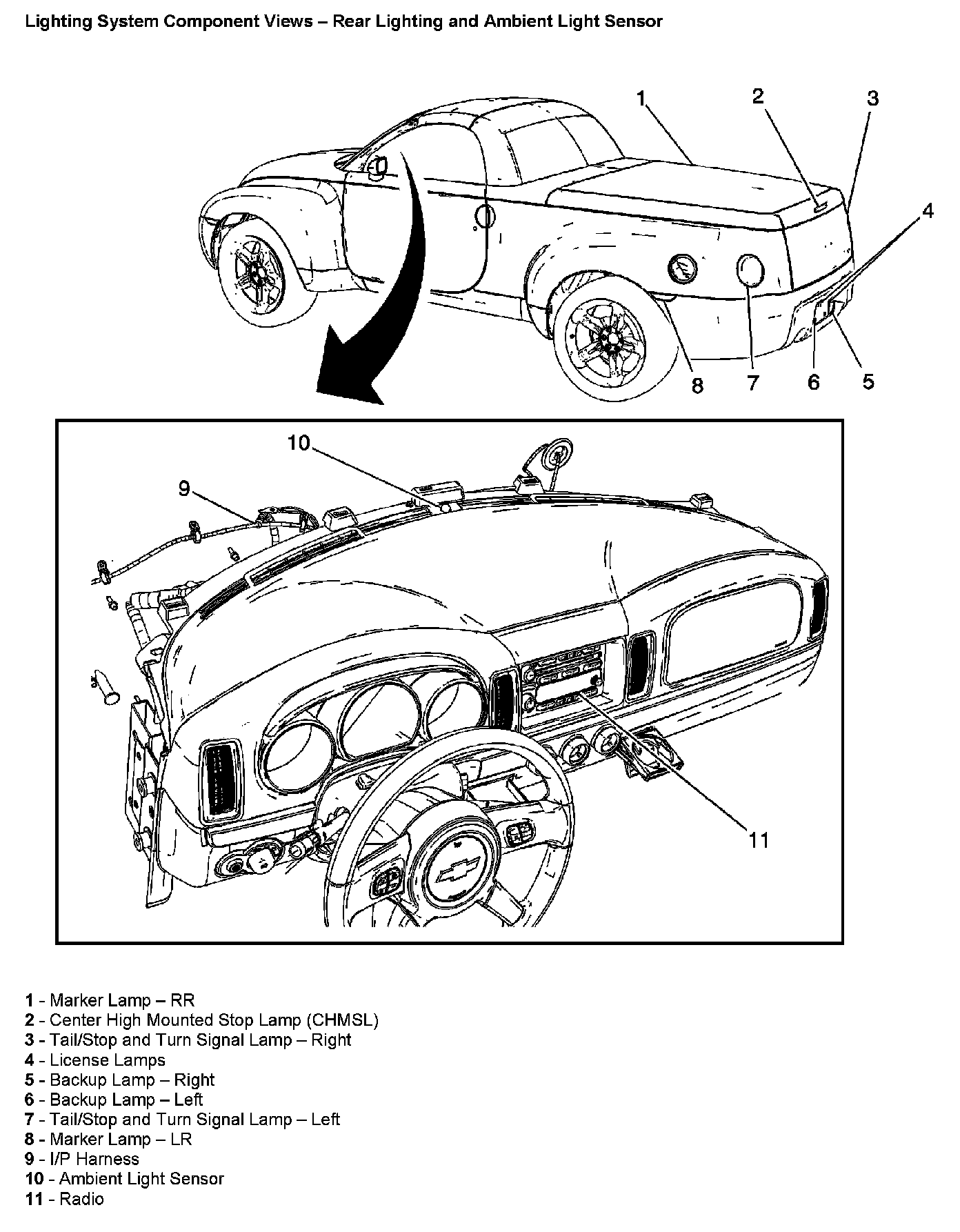 Lighting System Component Views - Rear Lighting And Ambient Light Sensor: