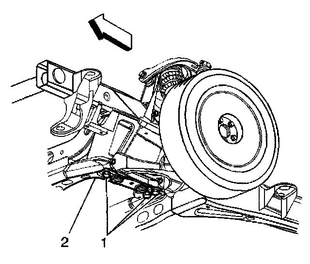 4. Loosen the lower control arm adjustment bolts (1).