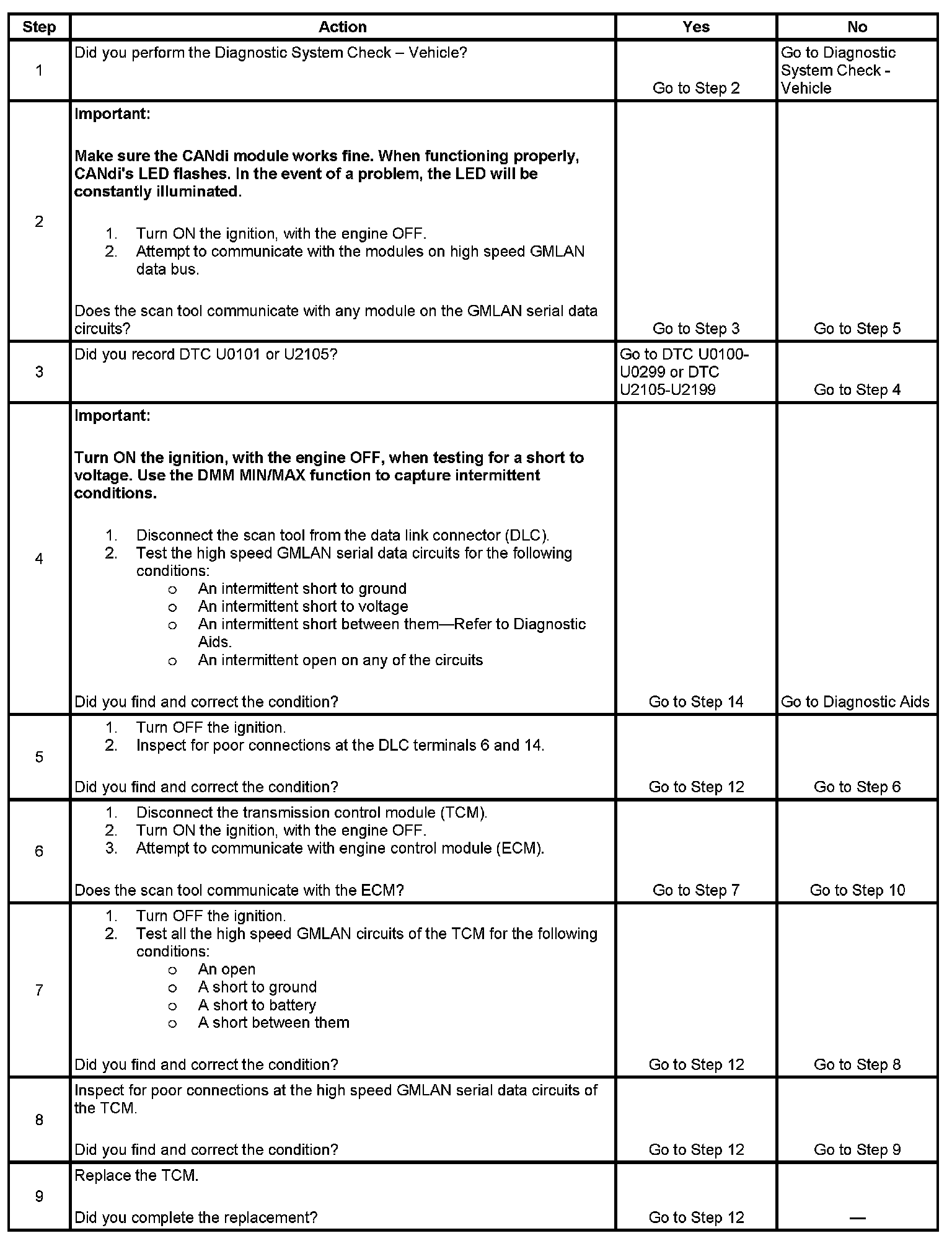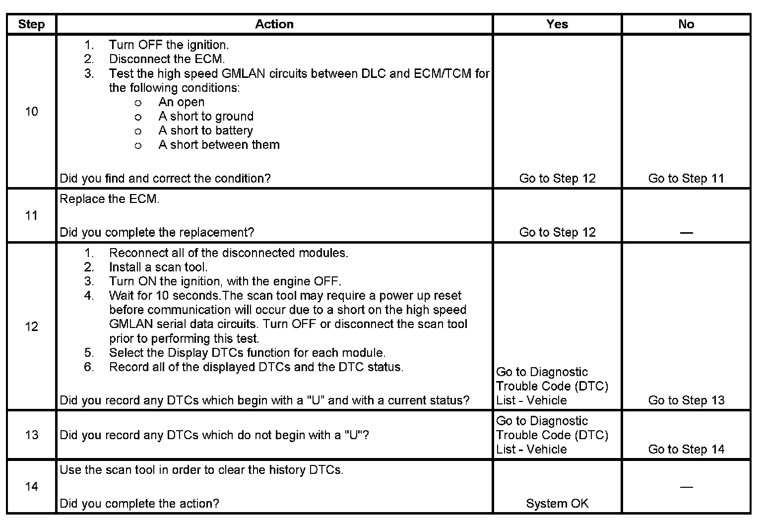 - A short between high speed GMLAN (+) and high speed GMLAN (-) circuits