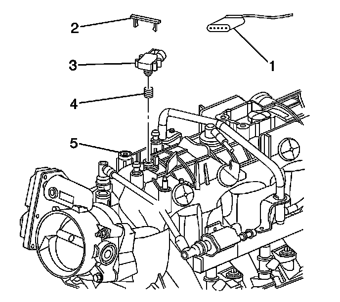 4. Remove the MAP sensor (3) and seal (4) from the intake manifold (5).