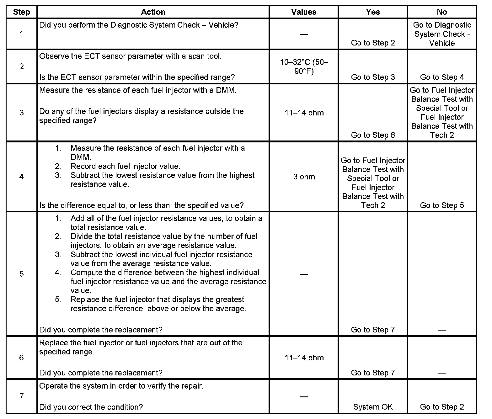 - Perform the fuel injector coil test within the conditions of the customers concern. A fuel injector condition may only be apparent at a certain temperature, or under certain conditions.