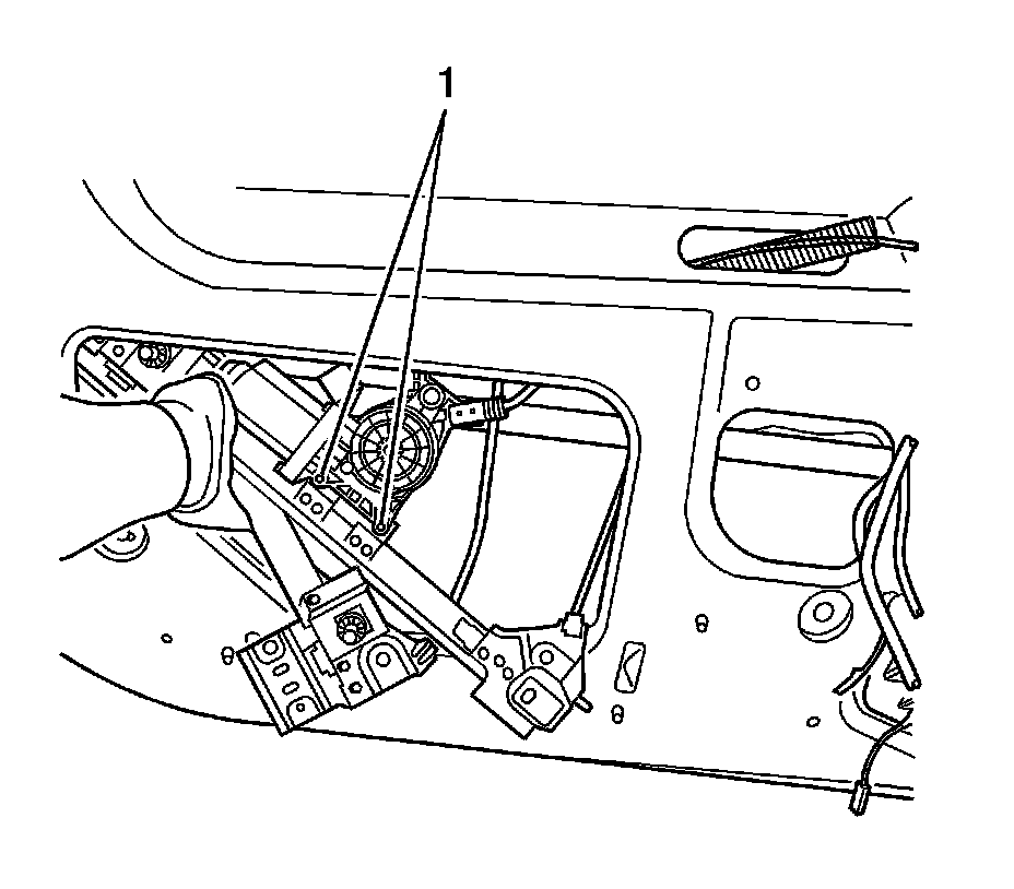 2. Install the door window regulator motor bolts (1) to the door regulator.