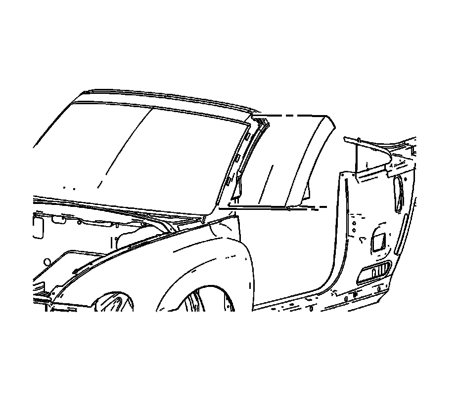 Important: When installing the upper windshield frame applique retainer, use caution to prevent the retainer from entering the water run channel in the header seal.