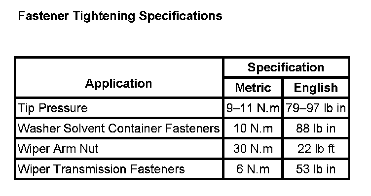 Wiper and Washer Systems: Specifications