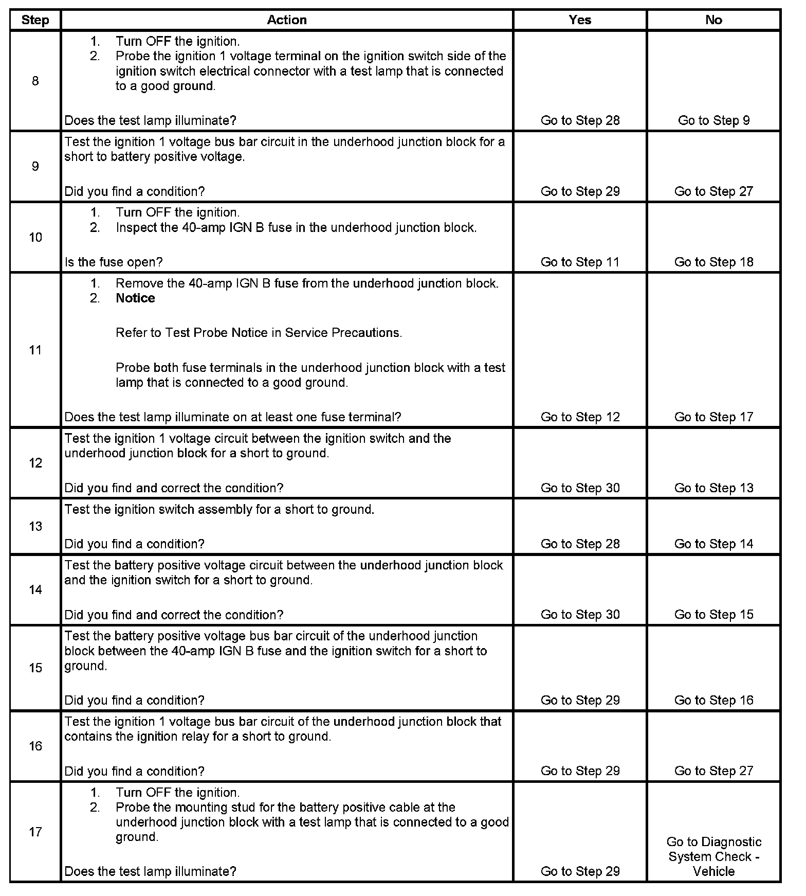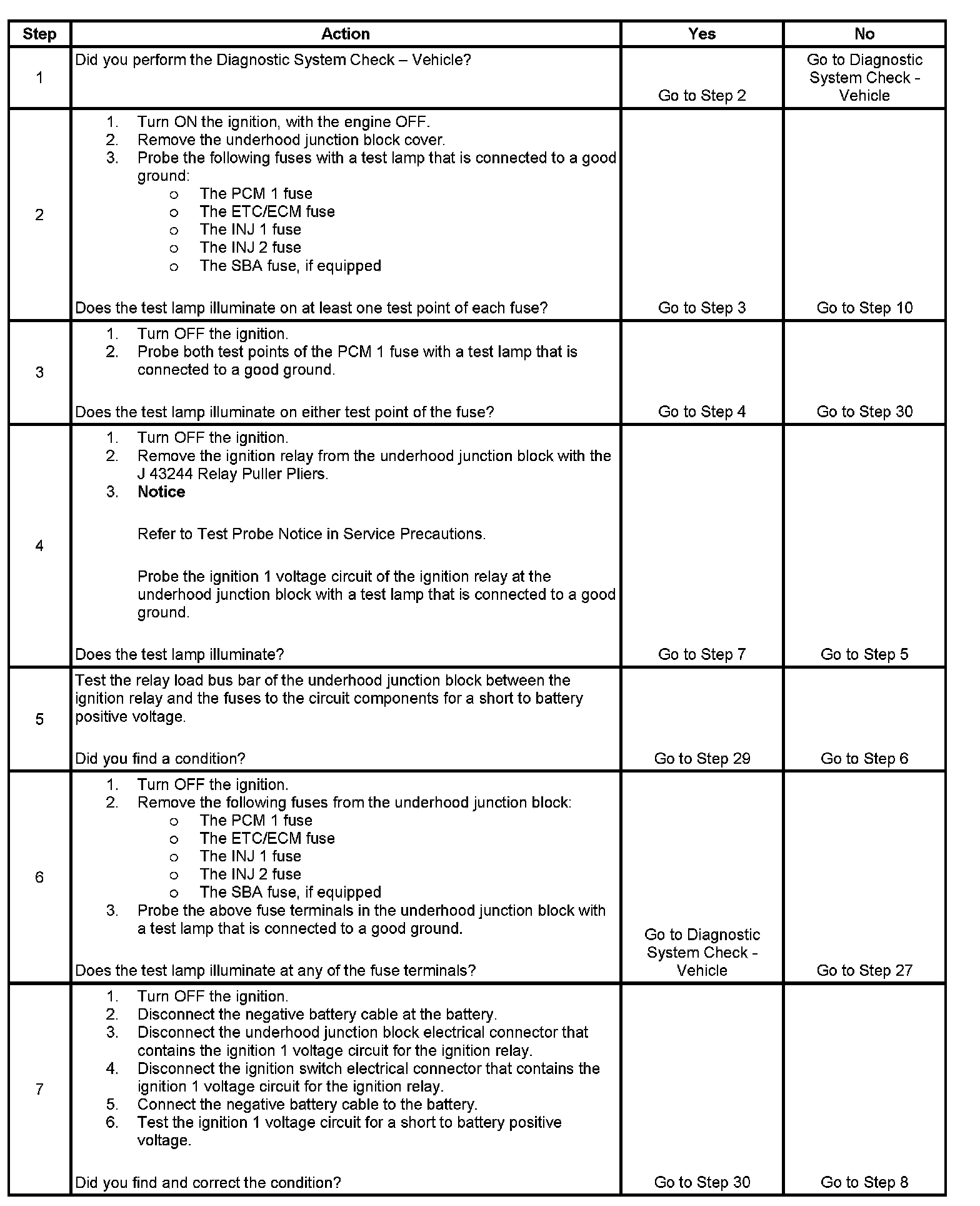 The ignition relay table assumes that the vehicle battery is fully charged. Refer to Battery Inspection/Test (Non-HP2) Battery Inspection/Test (HP2) in Starting and Charging. Battery Inspection/Test