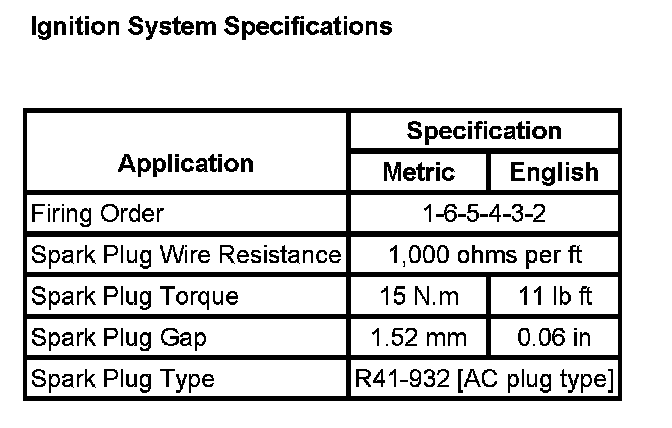 Ignition System Specifications: