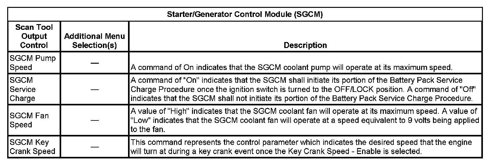 Scan Tool Output Controls