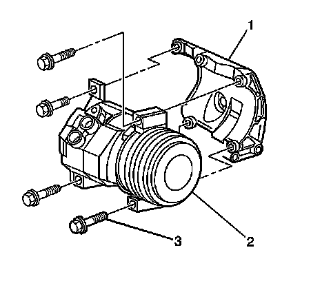 1. Install the A/C compressor (2) to the A/C bracket (1).