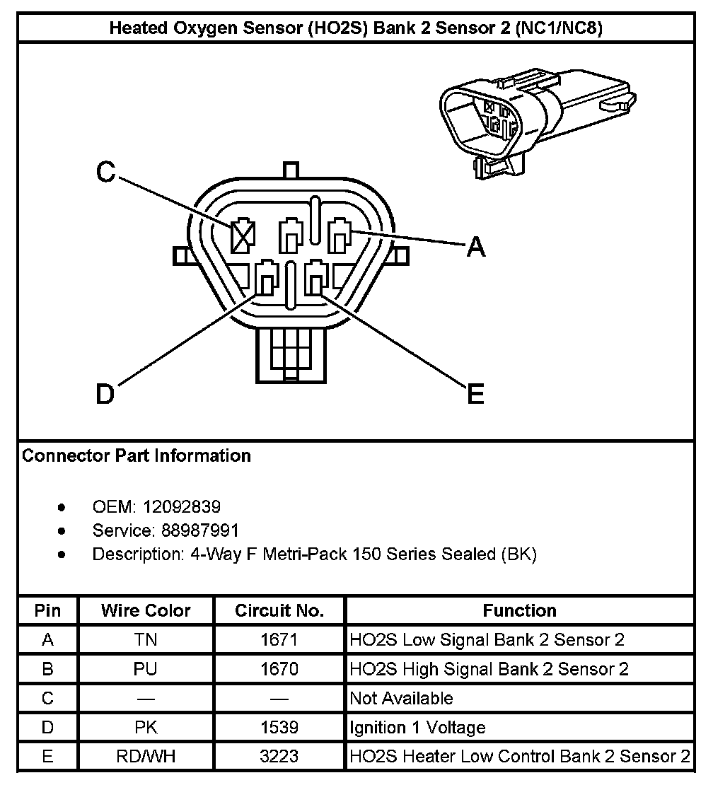 Heated Oxygen Sensor (HO2S) Bank 2 Sensor 2 (With RPO Code NC1/NC8):