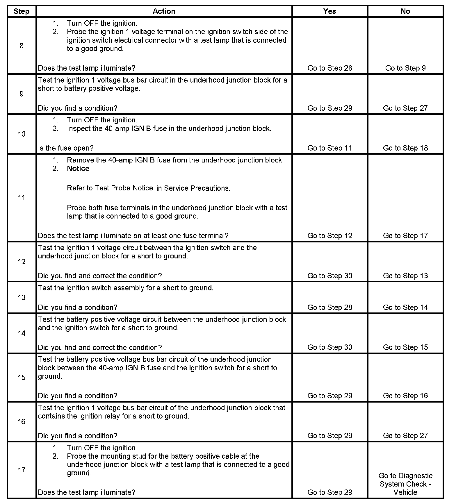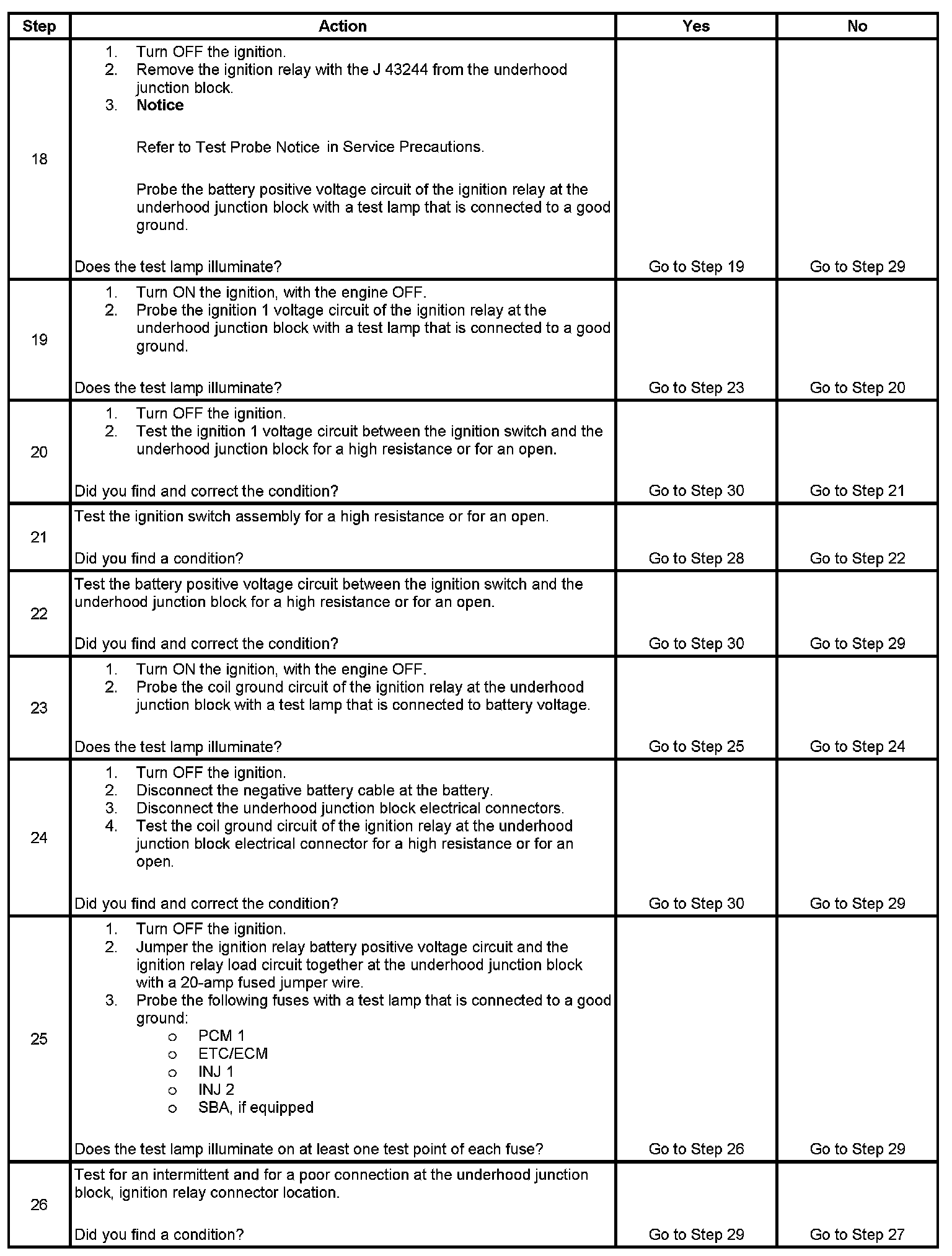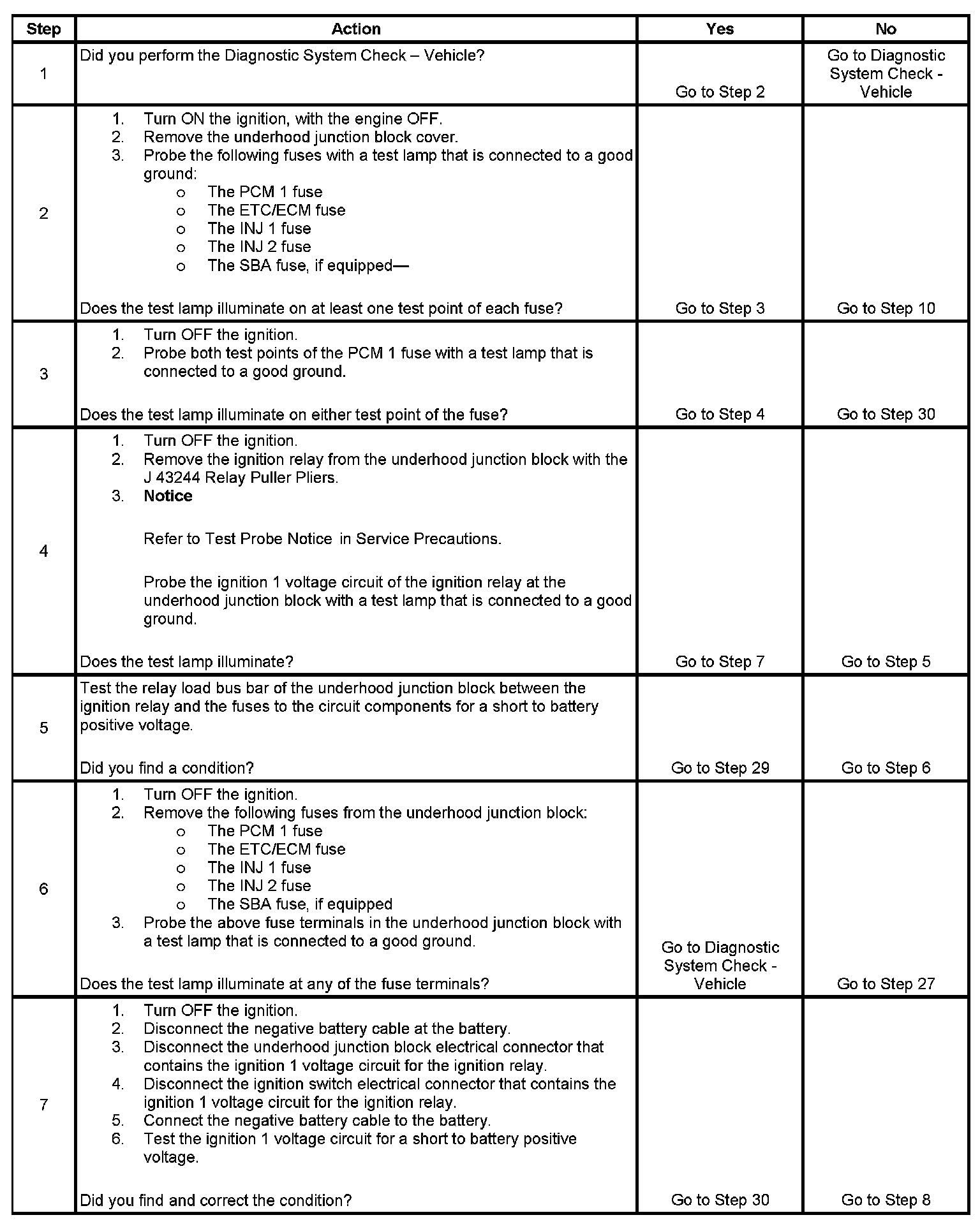 The ignition relay table assumes that the vehicle battery is fully charged. Refer to Battery Inspection/Test (Non-HP2) Battery Inspection/Test (HP2) in Starting and Charging. Battery Inspection/Test