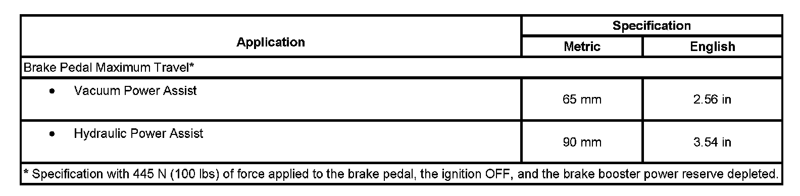 Brake System Specifications: