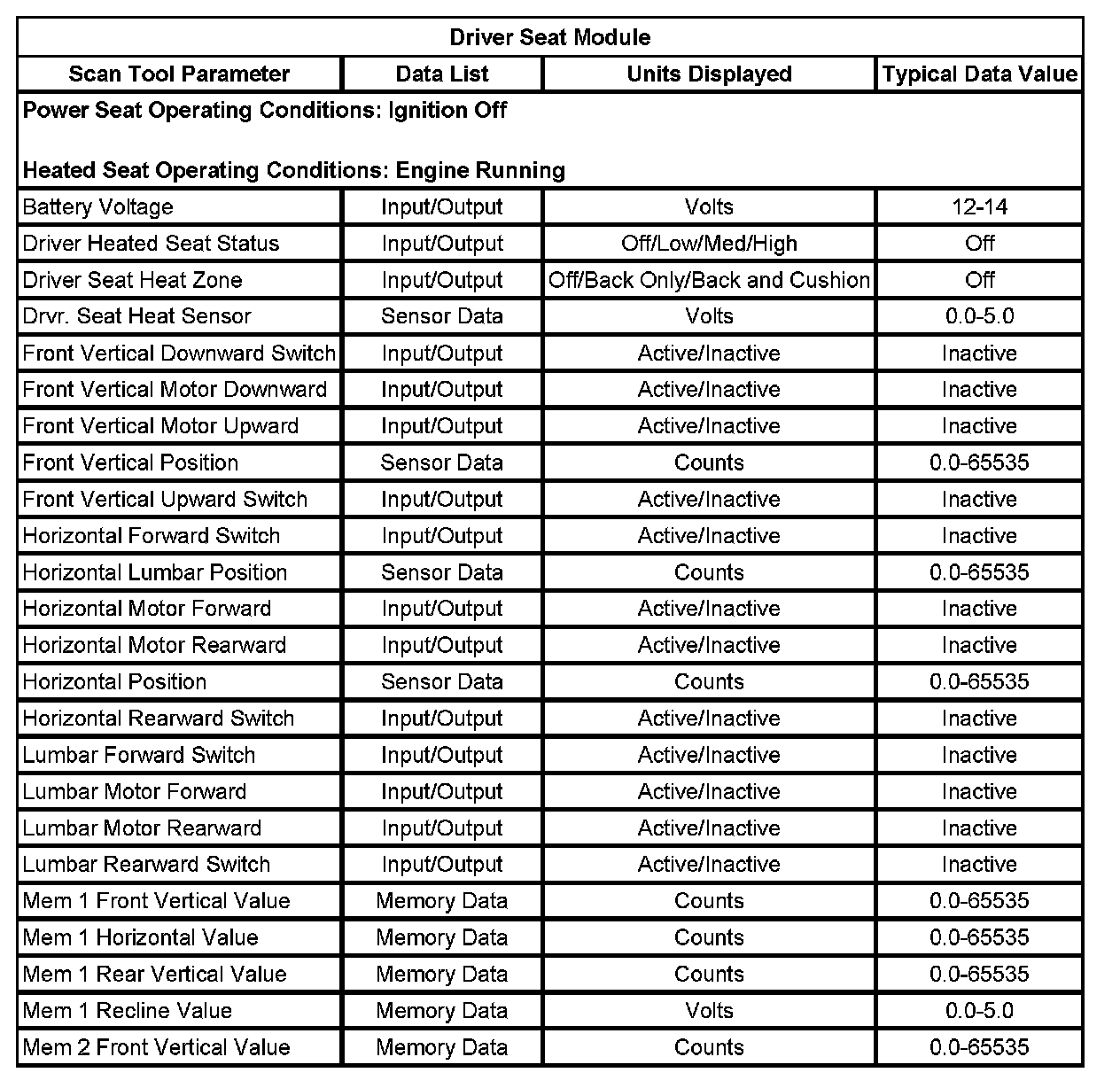 Scan Tool Data List