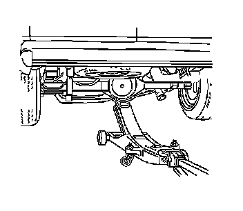 Position the jack under the rear spring hanger.
