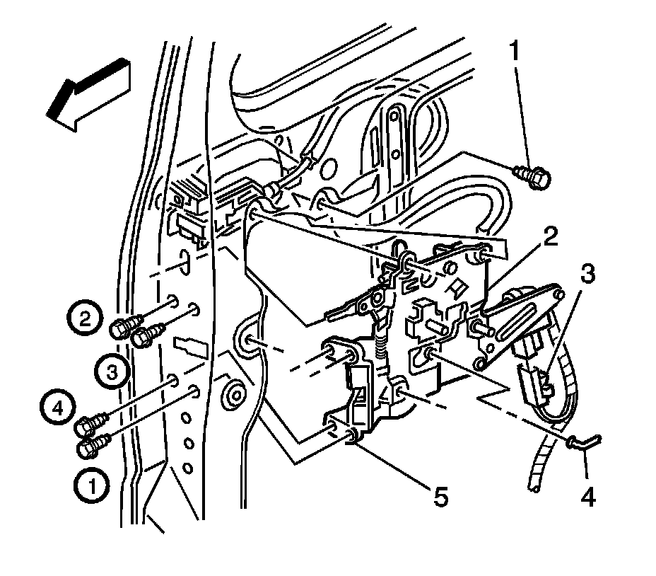5. Remove the lock module screws (1).