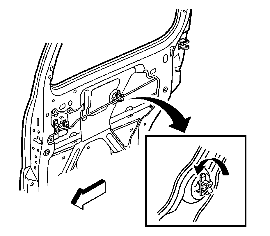 8. Ensure the rear latch rod is secured into the sliding door insulator guide.