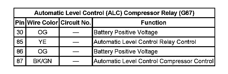 Automatic Level Control (ALC) Compressor Relay (G67):