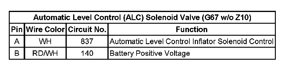 Automatic Level Control (ALC) Solenoid Valve (G67 w/o Z10):