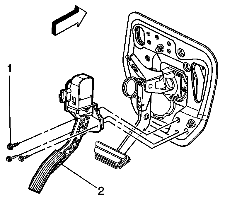 3. Disconnect the instrument panel (I/P) harness electrical connector (1) from the accelerator pedal.